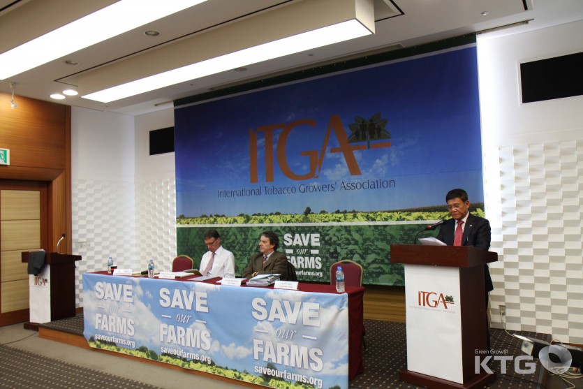 프랑수와 반더메르베 국제담배경작자협회 회장, 안토니오 아브룬호사 국제담배경작자협회 CEO에 이어서 이해권 KTGO연협중앙회(엽연초생산협동조합중앙회) 회장은 기자회견을 하였습니다. 이해권 KTGO 연협중앙회장은  "FCTC를 통해 담배 경작이 제한된다면 FCTC를 비준하지 않은 나라에서 더 많은 담배가 재배될 것이고 우리나라와 같이 FCTC에 비준한 나라의 농민만 피해를 보게 될것" 이라며 "터무니없는 규제안에 맞서 힘없는 우리 농민을 보호화는데 총력을 다하겠다"고 말했습니다.