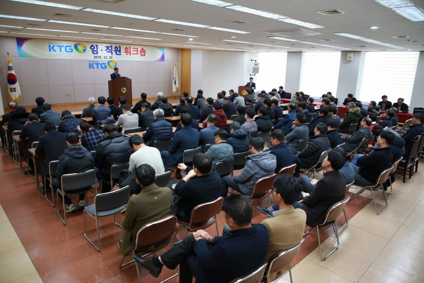 2019년도 KTGO 임직원 워크숍이 12월 23일 중앙회 대강당에서 개최되었다. 이날 중앙회장은 풍년 농사를 이루는데 열과 성을 다한 임직원에게 감사의 말을 전하였으며, 중앙회 이원식 전무이사는 변혁의 시기에 조직 구성원이 행동뿐 아니라 의식의 전환이 필요하며, 변화에 잘 준비해 나갈 것을 당부하였다.