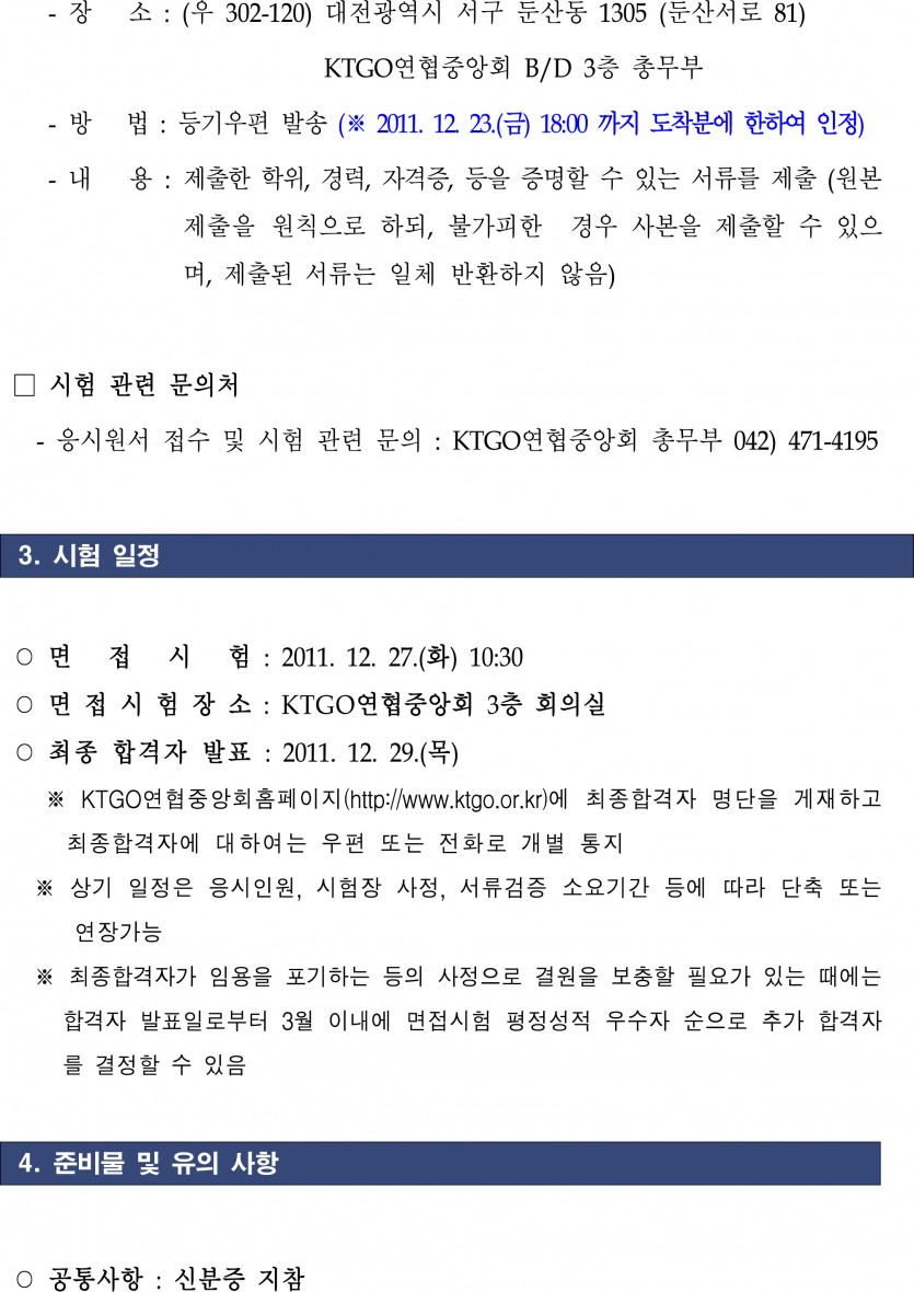 경제사업단 직원 서류시험 합격자 및 면접시험 공고