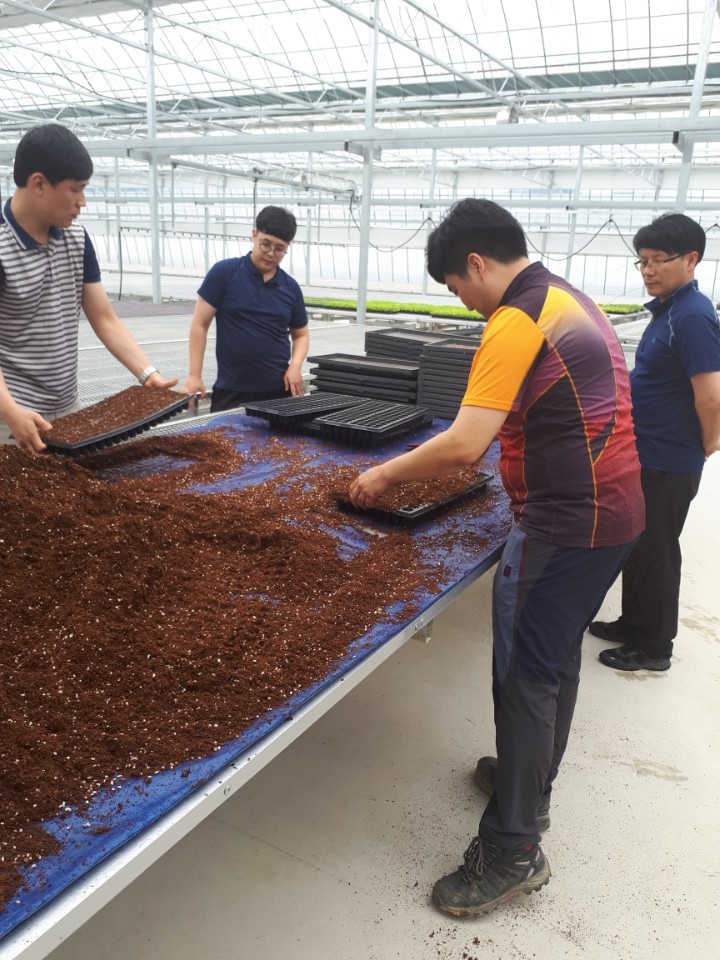 72째주 실습과정으로 공주 육묘장에서 파종 실습을 하였으며, 수확중인 농가에 방문하여 잎담배 수확건조 실습도 실시하였다.