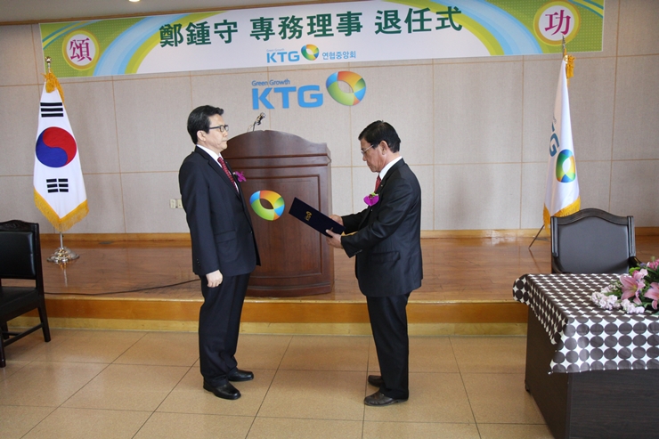 2014년 3월 28일 KTGO 연협중앙회 대강당에서 정종수 전무이사의 퇴임식을 가졌습니다. 이로써 2011년 4월 1일 선임이후 2014년 3월 31일까지 3년의 임기를 마무리 하게되었습니다.