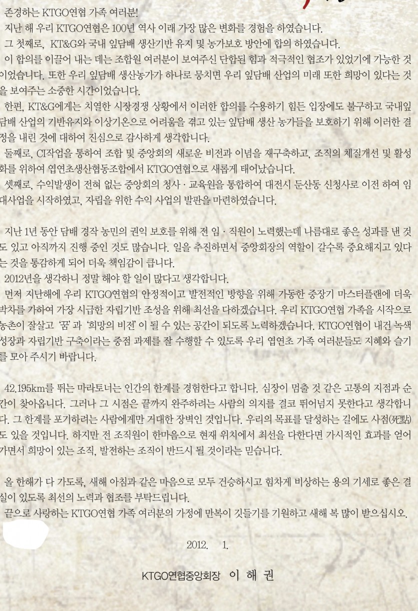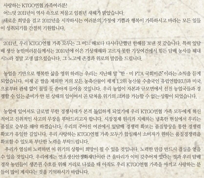 2012년도 KTGO연협중앙회장 신년사 > 공지사항